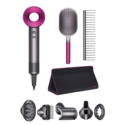 Если не только ежедневно делаете укладку, но и заботитесь о здоровье своих волос, то вам точно нужно рассмотреть покупку фена Hair Dryer HD07 от всемирно известного английского бренда Dyson. Устройство комплектуется дорожным чехлом, расческами и 5 насадками.