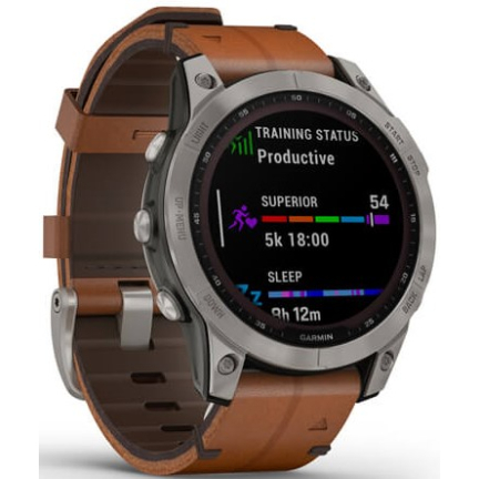 Garmin Fenix 7 Gps Watch Sapphire Solar Titanium / Chestnut Leather Band купить в Томске